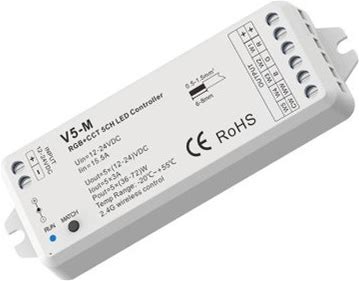 5-In-1 Looplicht DMX+SPI+WIFI Strip Controller - RF, 12V/24V, RGB+CCT